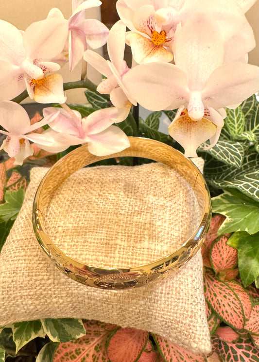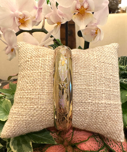 Floral Engraved Gold Filled Bangle Bracelet